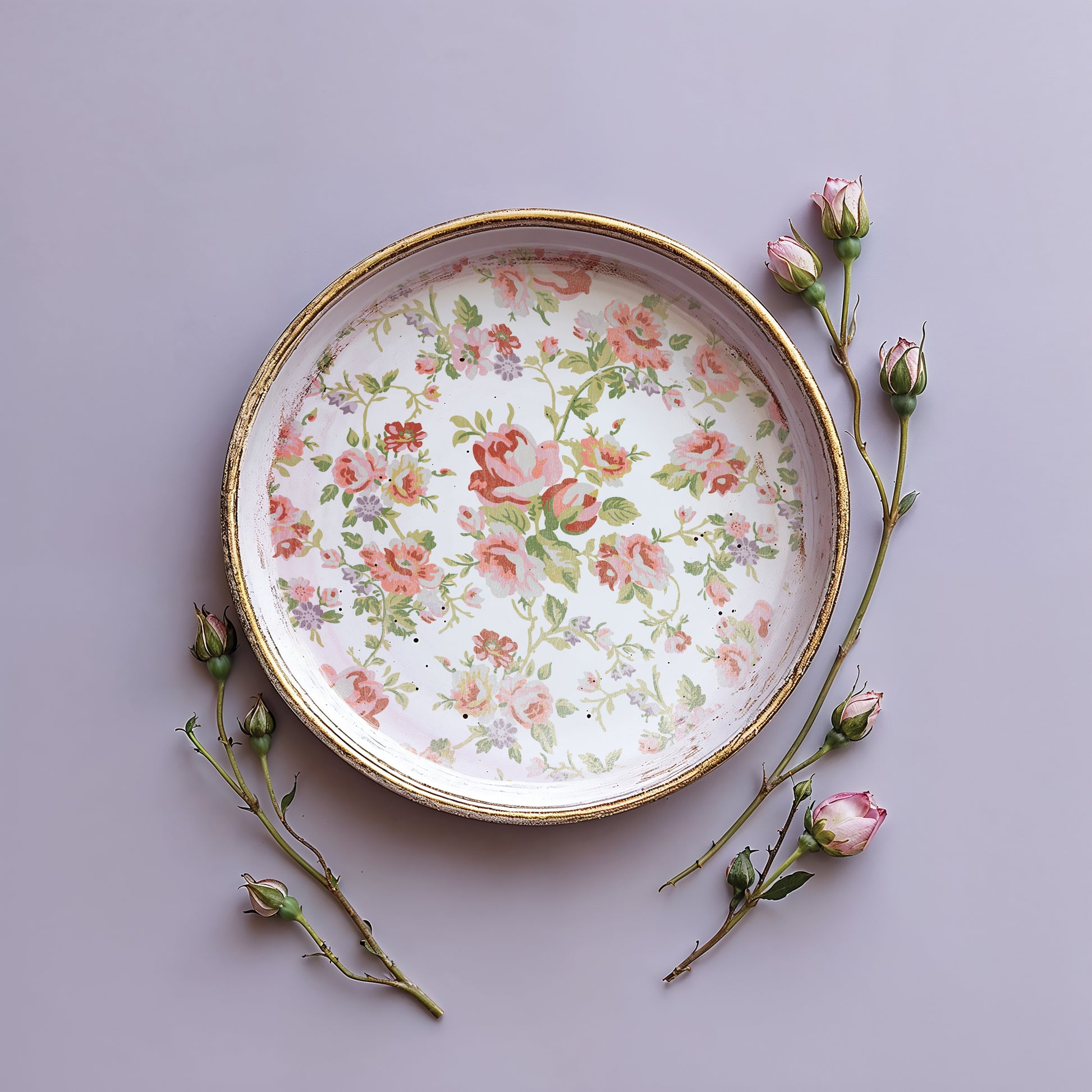 Ditsy Blooms is perfectly sized for both large and small projects. Imagine a vintage dresser adorned with sweet florals, brightening up a little girl’s bedroom. It would be absolutely adorable on thrifted small decor like a wooden tray or bread board to add some cottage charm to your kitchen.