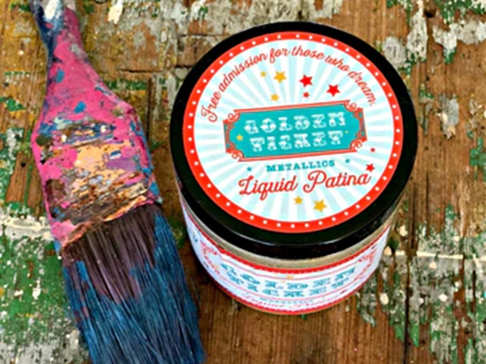 8 OZ SAMPLE. Gold Metallic Patina is for adding a shimmery gold sheen over your surface, it can be used as a translucent accent or made stronger with added coats