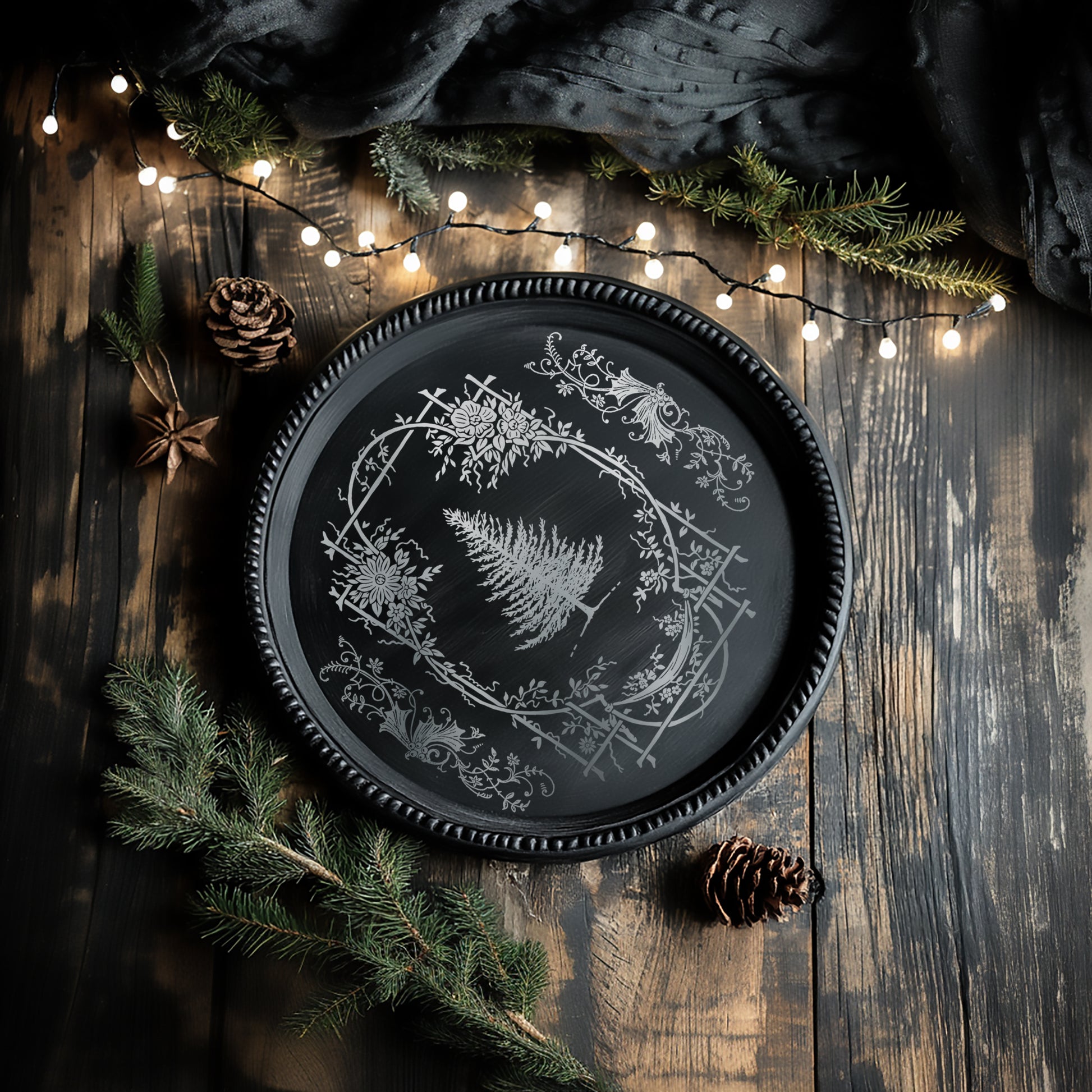 Meet Figgy & Flourish, our most luxe holiday gilded transfer yet, and yes, it’s gleaming with both gold and silver details! Inspired by old book cover foiling, printer’s ornamentation, and vintage labels, this festive beauty is glistening.