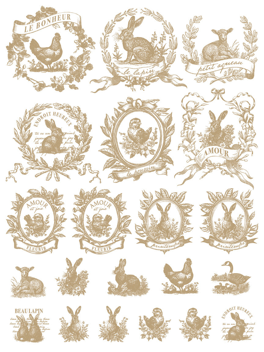 Imagine those sweet rabbits on small décor and mixed media or bold, breathtaking statements with clusters of roses on a vintage dresser.