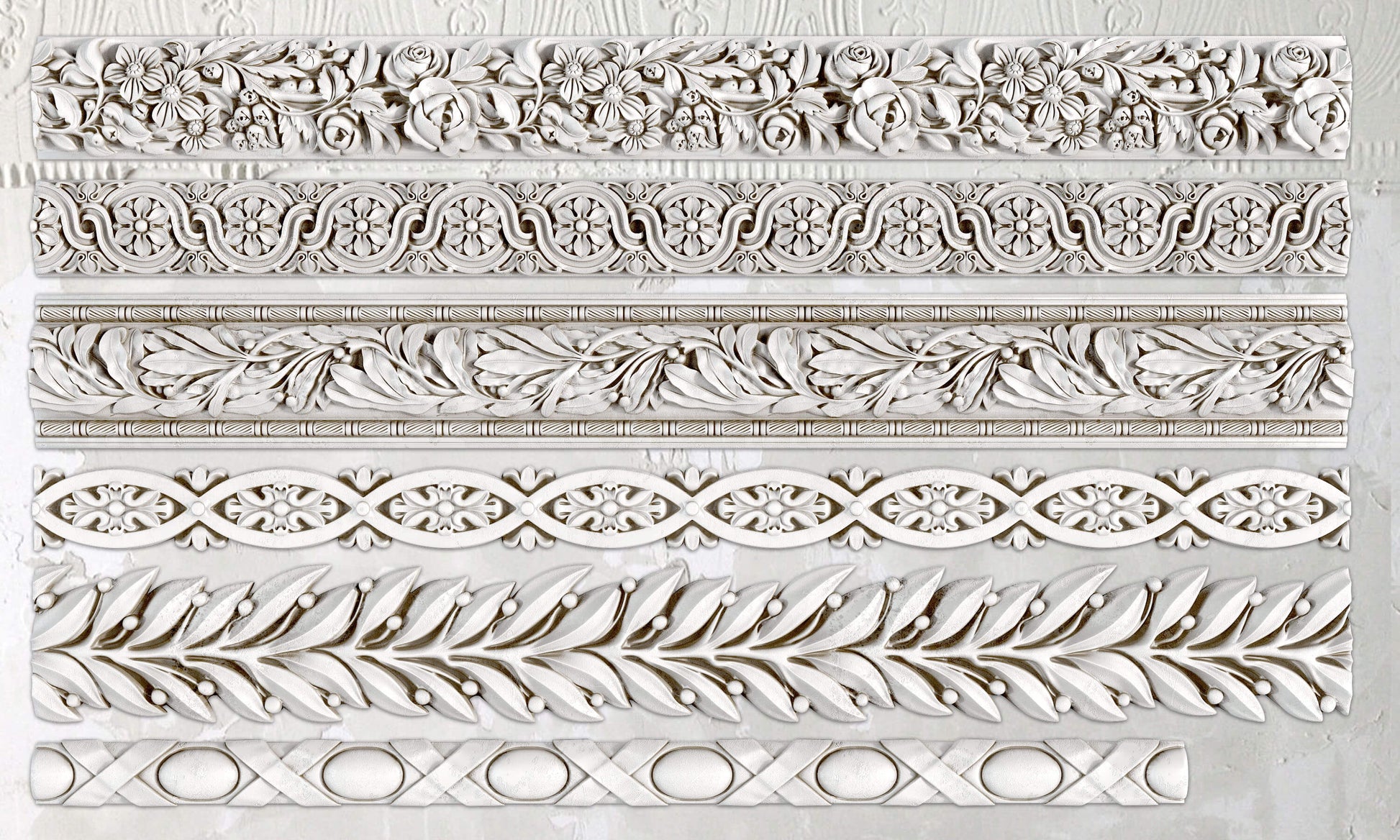Casting resins: There are some great pourable resins available. These have completely different qualities than the paper clay. There is no shrinking or warping, and the castings are more consistent. Depending on the project, these qualities can be helpful. If you need to conform them to a curved surface, this can be done if removed from the mould before it’s completely hardened.
